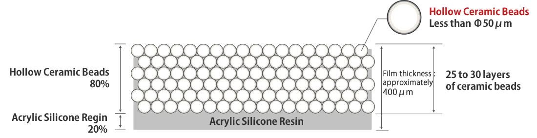 GAINA is a revolutionary coating material that not only insulates and blocks heat, but also improves various complaints about the home environment simply by applying it. The secret that sets it apart from other coating materials is the effect of special hollow ceramic beads.