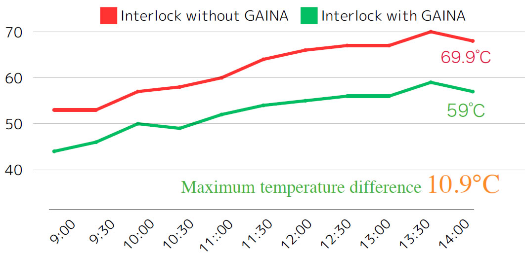 Importantly, the effectiveness of GAINA's heat management properties has been sustained even 10 years after installation, demonstrating its lasting impact on energy efficiency and operational costs.