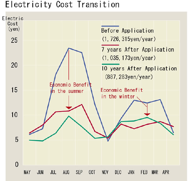 The implementation of GAINA has led to substantial long-term benefits over a 10-year period, with estimated electricity cost savings of 2.8 million yen.